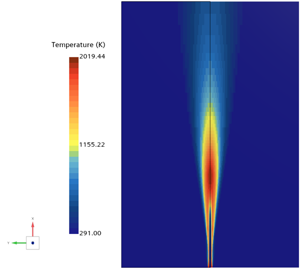 Figure 1. The sandia flame D experiment. Temperature scene of simulated Sandia Flame D
